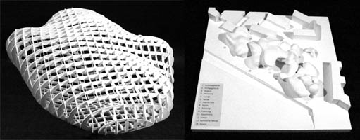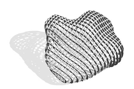 Die Konstruktion des Kongress-Saales ist als Semi-Monocoque-Haut gedacht. Die Trägerhöhe kann mit der Finiten-Elemente-Methode dem Momentenverlauf angepasst und CNC-geschnitten werden.
