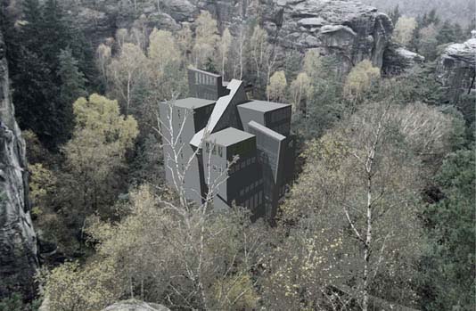 Formen des Rauensteins steht. Das Gebäude sucht eine abstrakte,