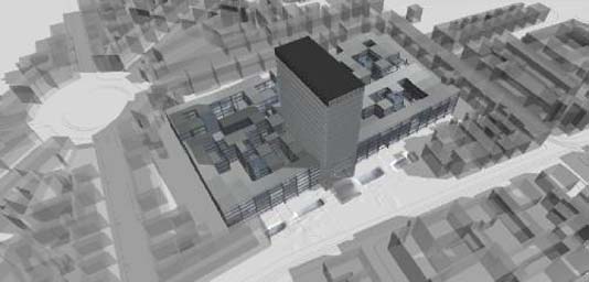 unteren Bereich des Hochhauses besondere Aufmerksamkeit zuteil,